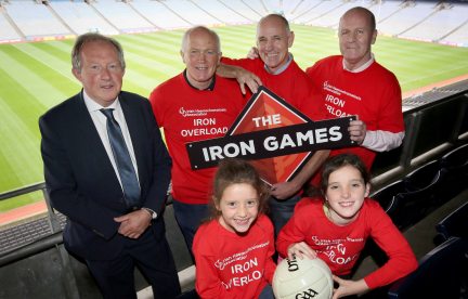 Pictured at Croke Park for the launch of the Inaugural Iron Games 2019 in aid of the Irish Haemochromatosis Association (IHA) are Georgina Mullet (6) from Rathgar, Dublin, and Andrea Beggy (9) from Navan, Meath, with, from left: Tom Parlon, Director General of the Construction Industry Federation; Barney Rock, David Beggy and Jack O’Shea.